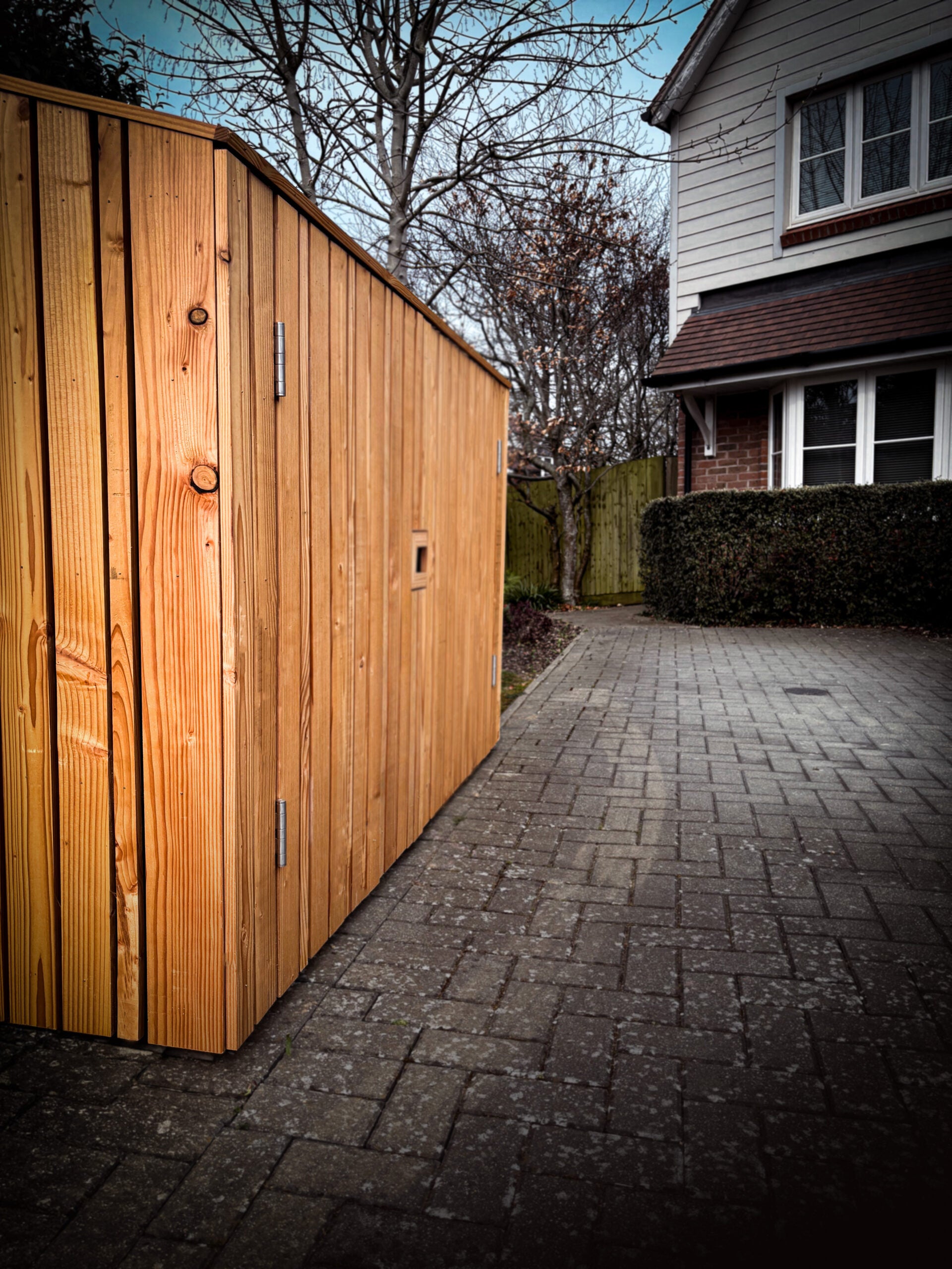 Our bespoke service uses the same rock-solid, tried-and-tested core elements (like the frame, security, and waterproofing) for every piece, ensuring peace of mind from the start. But we mould the shape, finish, and cladding type to your exact specs. This means extra-wide bike sheds, roll-in designs for easy access, custom-cladded options, or vertical storage that fits awkward places without compromise. Lead time is 7-8 weeks.